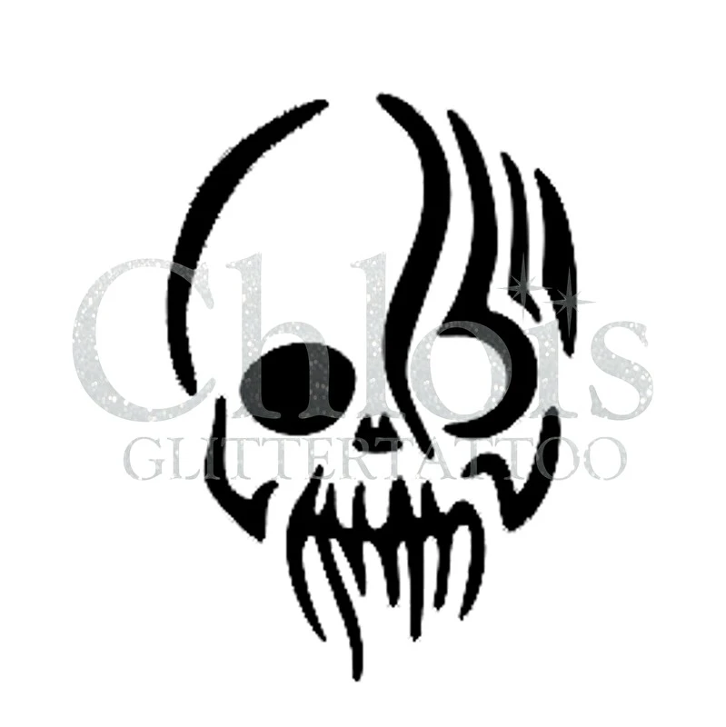 Chloïs Glittertattoo Sjabloon Trible Skull (5 stuks) zijn 5 dezelfde zelfklevende sjablonen, speciaal voor het maken van glittertatoos. Extreem simpel in gebruik en super hygiënisch omdat ze per stuk aan twee kanten beschermd zijn. Wij raden je aan om de sjablonen maar eenmaal te gebruiken, met oog op de hygiëne, want er blijven dode huidcellen achter op de klevende kant van het sjabloon als je deze verwijderd. De lijm op het sjabloon is echter sterk genoeg om meerdere keren opnieuw te blijven plakken, zou je ze voor trainingsdoeleinden willen gebruiken.