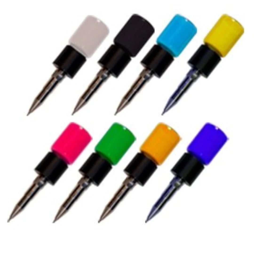 Deze set van 8 kleurencartridges bestaat uit een set van 8 15 cc (1/2 oz) flesjes , met een nozzle/naald van 7 mm en een make-up flow regulator. De make-up flow regulator past de hoeveelheid make-up aan die in de airbrush wordt gevoerd, waardoor nauwkeurige controle over het spuitpatroon mogelijk is. Door de make-up flow regulator in de uit-stand te zetten, voorkom je dat er lucht in het patroon komt en hoeft je het mechanisme niet te reinigen als het binnen zeven dagen wordt gebruikt. De verf of make-up kan eenvoudig worden toegevoegd door de fles uit de montage te schroeven.