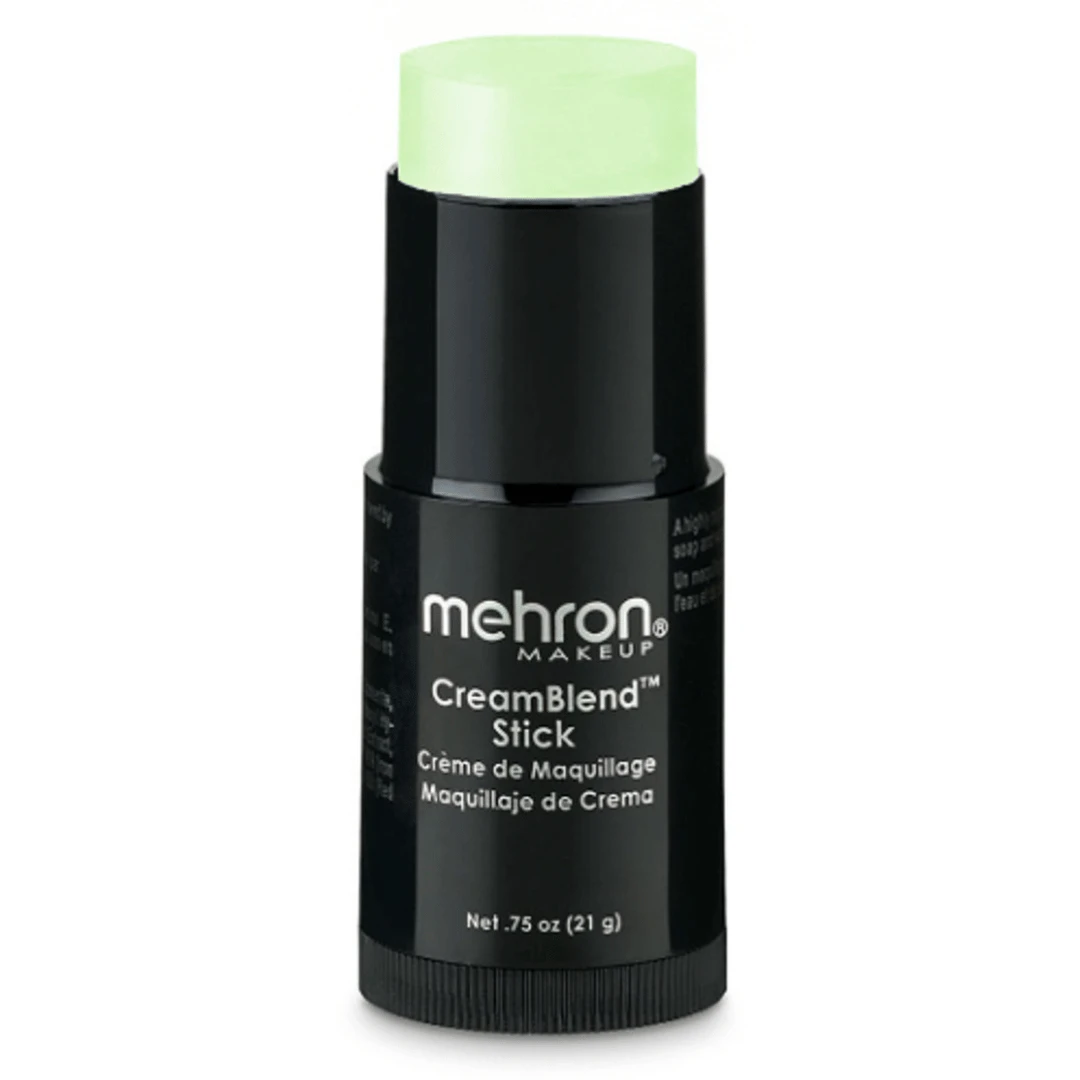 Mehron CreamBlend™ Stick Pastel Green is een zeer gepigmenteerde, verfijnde crèmemake-up in een handige uitdraaibare stick. De crème-formule met volledige dekking is ontwikkeld om te blijven zitten zelfs onder zware prestatieomstandigheden zoals hete podiumlichten. CreamBlend™ Stick bevat vitamines en antioxidanten en is geformuleerd zonder de petrolatum-basis die vaak wordt aangetroffen in traditionele greasepaint/vetschmink. CreamBlend biedt de ultieme dekking en prestatie. Verkrijgbaar in een verpakkingen van 21 gram.