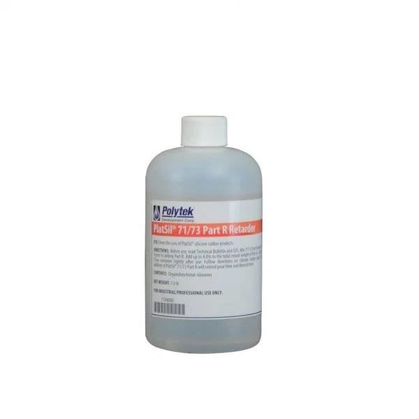 PlatSil® 71/73 Part R Retarder vertraagt de uitharding van PlatSil®-producten. Door ~ 1% deel R aan het totale gemengde gewicht toe te voegen, wordt de giettijd ongeveer verdubbeld. Door ~ 2% van Part R toe te voegen, wordt de giettijd verdrievoudigd. Experimenteer om de hoeveelheid te bepalen die het meest geschikt is voor uw toepassing. Gebruik niet meer dan 4%, aangezien het systeem mogelijk helemaal niet uithardt. OPMERKINGEN: Voeg deel R toe aan deel A voordat je het mengt met deel B.