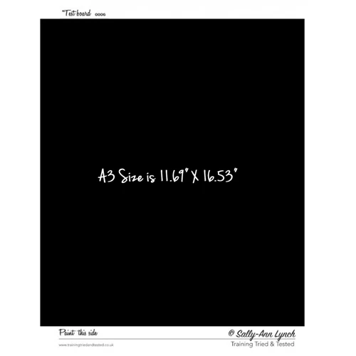 Wanneer je wil oefenen met schminken is het makkelijk wanneer je hiervoor een oefenhoofd of deze schmink oefenborden in huis hebt. Gewoon omdat niet altijd iemand model voor je kan zitten en veel oefenen belangrijk is om steeds beter te worden in het schminken. Deze Oefenborden zijn gemaakt door Sally-Ann Lynch. Een gerespecteerd schminker en docent. Dit oefenbord is zwart. Perfect voor het oefenen van one stroke designs als rozen, bloemen, dolfijntjes e.d. Het bord is 42 x 29,7 cm groot (A3)