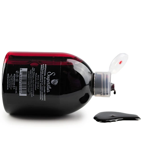 Superstar Nepbloed Donker Dik, Stollend 250ml is een kunst bloed dat vrij dik is en dus mooi op de aangebrachte plek blijft zitten zonder uit te lopen.
