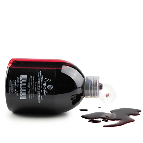Dit bloed is niet uitwasbaar en wat moeilijker afwasbaar van de huid. Superstar heeft het bloed compleet vernieuwd. Het is ook uitermate geschikt om bloederige kleding mee te maken.