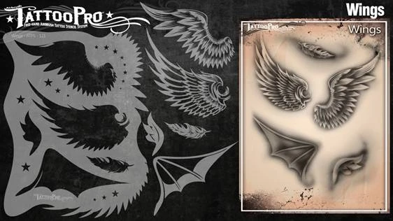 Wiser’s Airbrush Tattoo Pro™ Stencil – Wings zijn Airbrush sjablonen speciaal ontworpen door Bodypaint en Graffiti artist Wiser Oner.