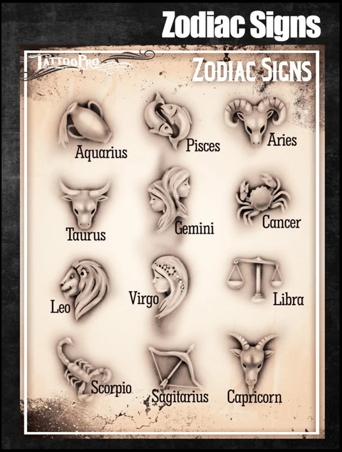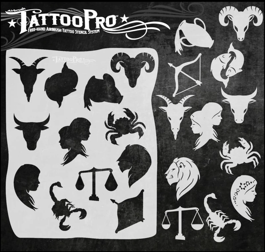 Wiser’s Airbrush TattooPro Stencil – Zodiac zijn Airbrush sjablonen speciaal ontworpen door Bodypaint en Graffiti artist Wiser Oner.