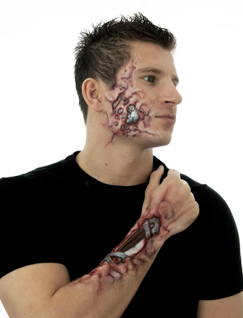 Randen wegwerken van de Prosthetic. Wanneer je de randen mooi wilt wegwerken van de Latex Protheses kun je dat op verschillende manieren doen. Je kunt het met vloeibare latex doen of een pros-aide cream. Probeer altijd naar de rand toe te werken zodat je een mooie overgang krijgt van de huid naar de Prothese. Het kan zijn dat je meerdere laagjes moet gebruiken voor een optimaal resultaat.
