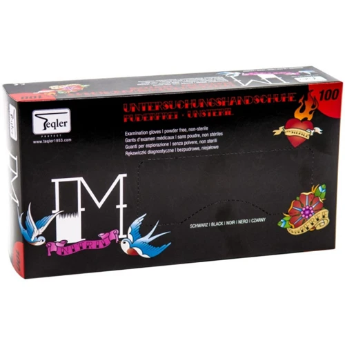 Zwarte Nitril Handschoenen Maat M (100st) zijn perfect voor special effects makeup artiesten en airbrush artiesten. De verpakking van deze handschoenen heeft een mooie tattoo-look en maken ze mooi om op tafel te zetten tijdens je werk. Deze handschoenen van zwart nitril zijn elastisch en scheurbestendig, bieden een comfortabele pasvorm. Omdat deze handschoenenvan 100% nitril zijn gemaakt zijn deze handschoenen ook geschikt voor artiesten met een latexallergie. Om optimaal te kunnen werken, bieden de tatoeëerdershandschoenen een uitstekend tastgevoel in de vingertoppen.